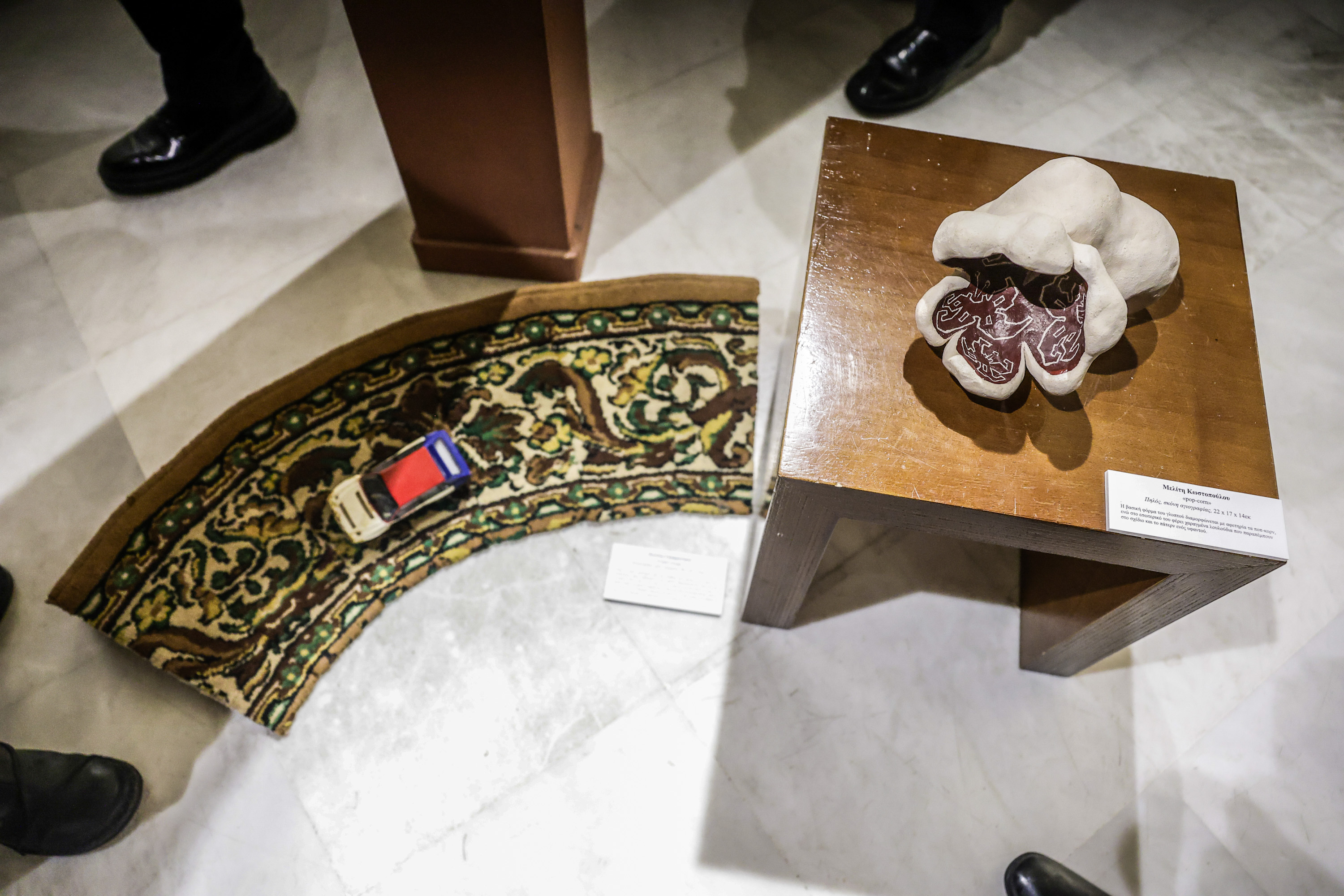 (Ξένη Δημοσίευση) Έργο, μέρος της έκθεσης «Διαχρονικές Υφές- Ο Διάλογος των Ιωαννίνων» κατά τη διάρκεια των εγκαινίων παρουσία του Προέδρου της Δημοκρατίας Κωνσταντίνου Τασούλα στη Δημοτική Πινακοθήκη Ιωαννίνων, Σάββατο 21 Φεβρουαρίου 2026. Ο Πρόεδρος της Δημοκρατίας Κωνσταντίνος Αν. Τασούλας, παρέστη στις εορταστικές εκδηλώσεις της 113ης επετείου της απελευθέρωσης της πόλης. ΑΠΕ-ΜΠΕ/ΠΡΟΕΔΡΙΑ ΤΗΣ ΔΗΜΟΚΡΑΤΙΑΣ/ΘΟΔΩΡΗΣ ΜΑΝΩΛΟΠΟΥΛΟΣ